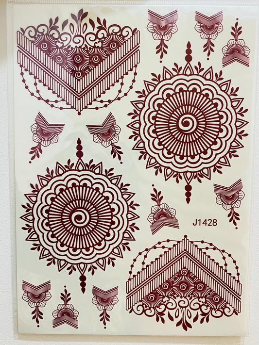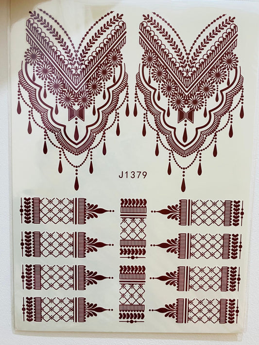 1x Sheet Temporary Henna Tattoo Sticker Maroon-Brown Mehndi Henna Body Art